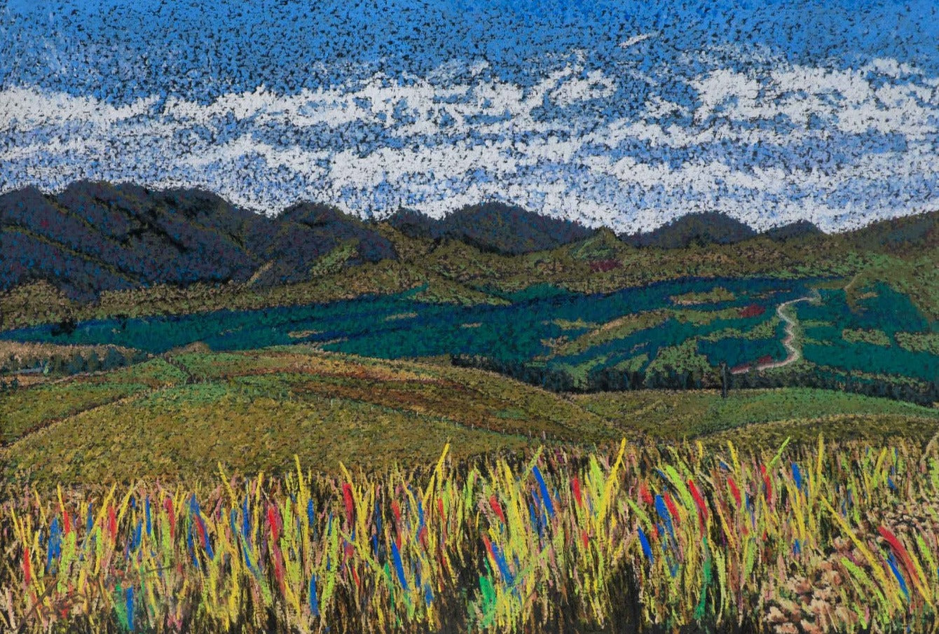 Out Rawdon Vale way was created using pointillsim in soft pastels from a photo, taken by Tracey's partner Barry, near their home. Tracey loved the look of wide open spaces and the glorious sky. At the moment, Tracey's new favourite method to do landscapes is dots in soft pastels. It is very time consuming and really creates a calm space while she is working. This original work was snapped up the first day it was exhibited. However, prints are available for purchase.
