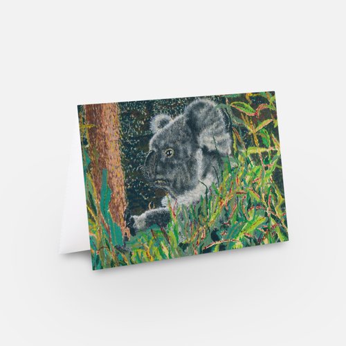 Tracey took this source photo while giving a German backpacker his dream of seeing koalas. She was pretty impressed as Tracey is not known for her photography skills! She was delighted with the wonderful profile of the koala emerging from the leaves.