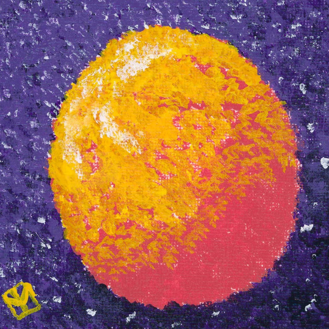 This original is another artwork done in one of the Widows Art Community workshops. The subject was any round object and Tracey came up with this round planet looking shape in space. Also done in pointillism, the method being used and taught by Tracey in Widows Art Community. Very therapeutic and slows down the ladies' thoughts.