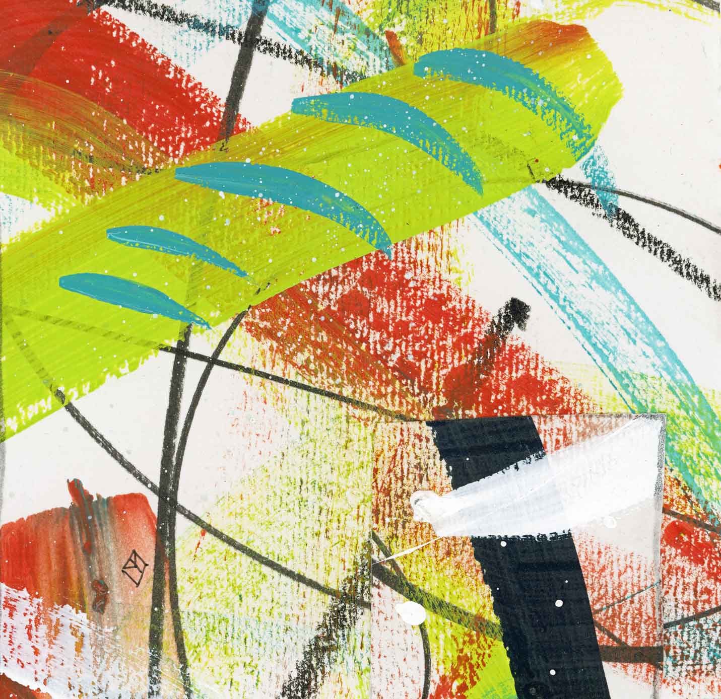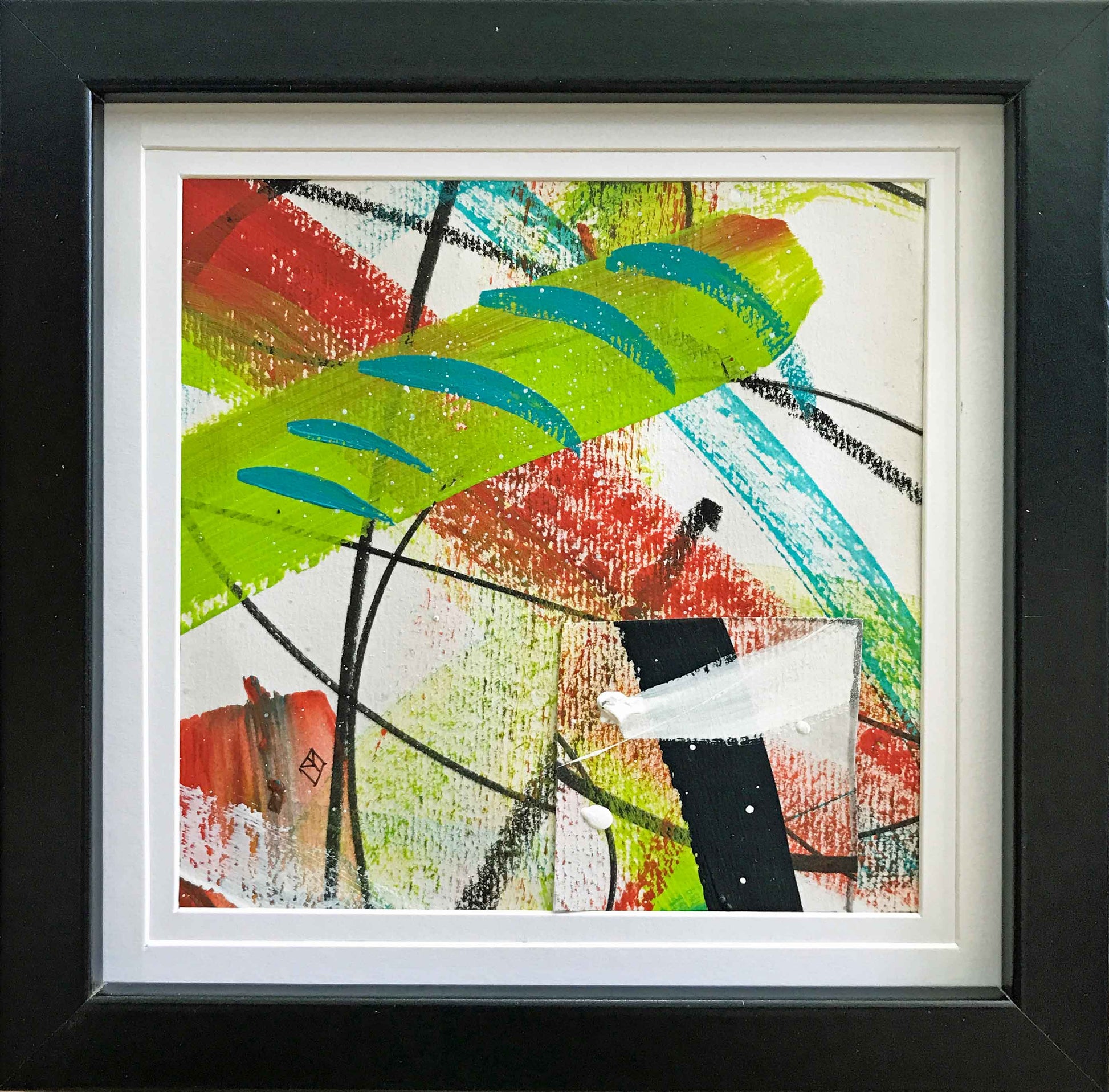 Loose gestural marks hinting at the grass is greener. Mixed Media. Signed on back with Tracey’s monogram on the front. Comes with a Certificate of Authenticity