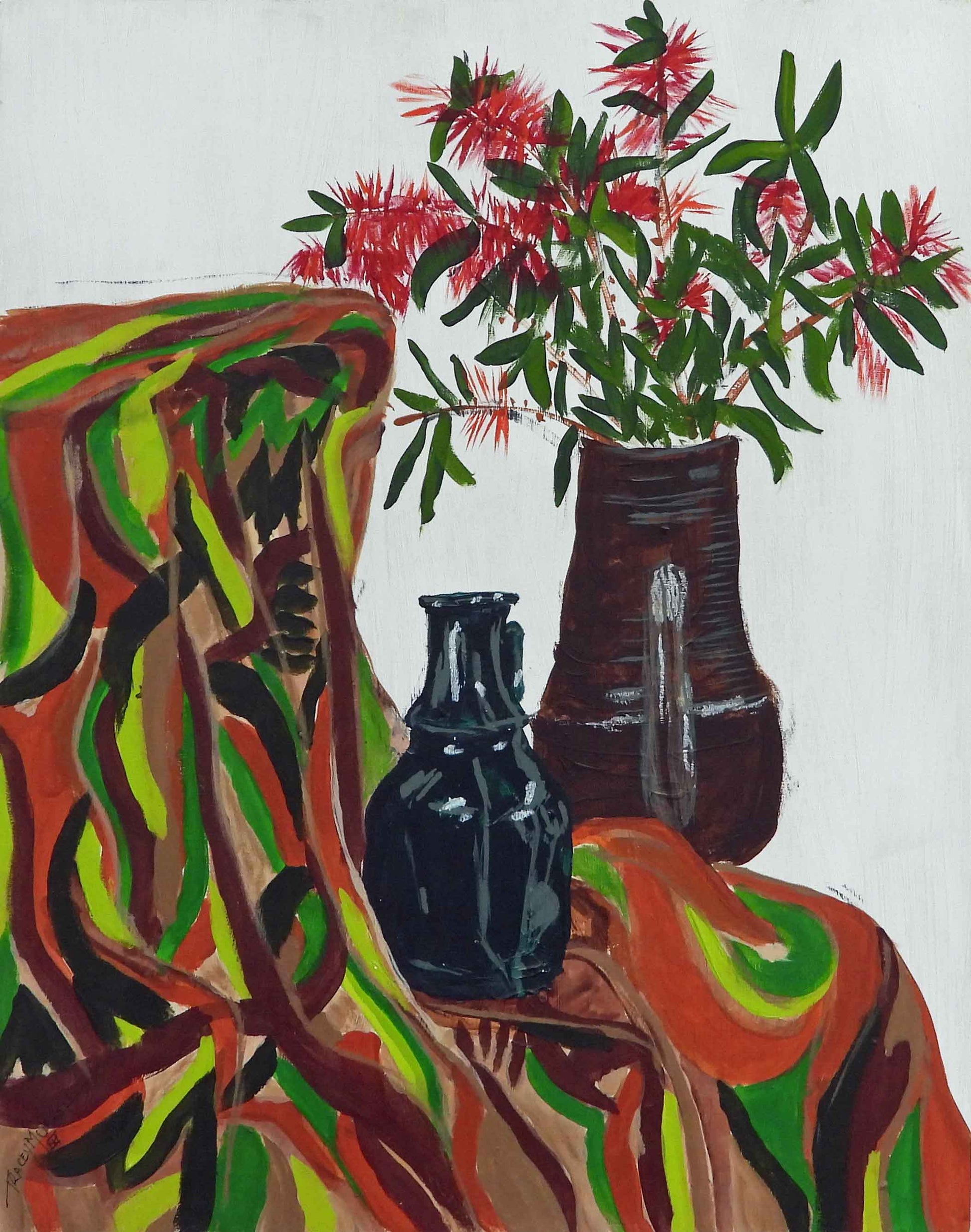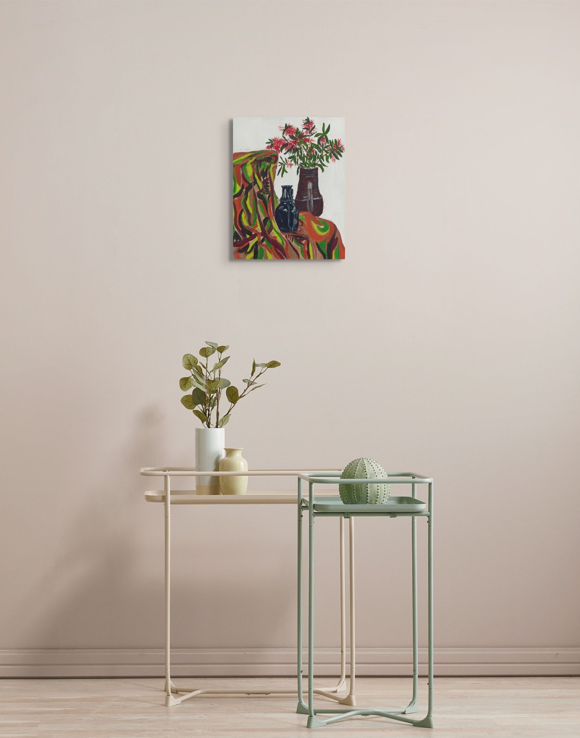 Tracey is exploring a new method of painting. The first, Still Life with Bottle, was painting from observation using her trademark vibrant colours. Still painted with a brush, it was moving away from her more recent works in a freer and looser style. Subsequently, Tracey painted Still Life with Coffee Pot using a credit card and palette knife. Getting even more loose in style. She followed these up with Still Life with Bowl of Pears and Still Life with Bowl of Limes that she painted simultaneously in this newer, looser style. All paintings were done from observation of still life arrangements. A palette knife and credit card forces the artist not to focus on fine details but capture the image in loose, bold strokes. Creating an impression of the subject rather than a detailed 'copy'.