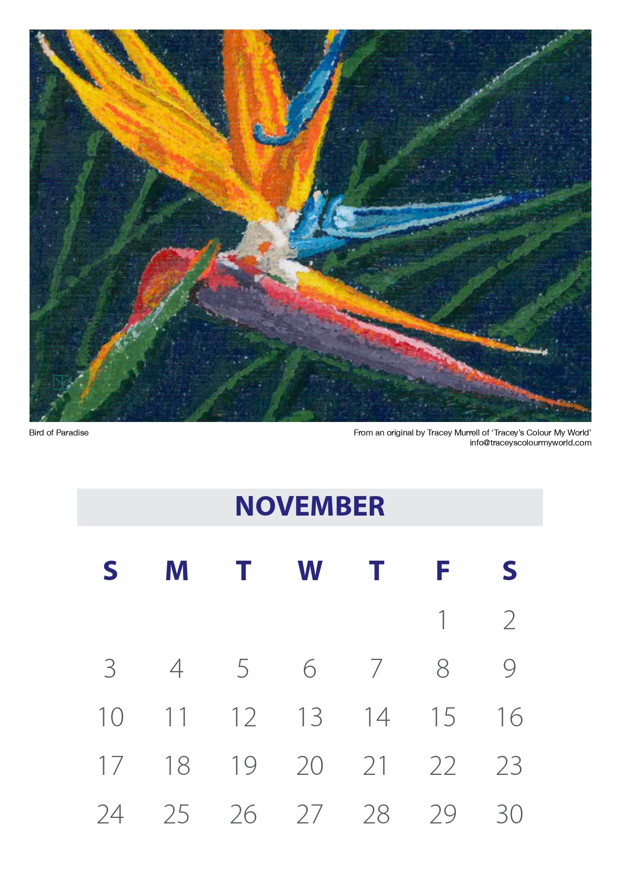 Tracey has produced a lovely, bright calendar for 2024. Perfect for any home and a lovely gift for the coming holidays. Each month is an individual sheet printed on high quality 300gsm fine art paper. Hung using a bulldog clip provided. The latest trend in fine art calendars. When you have finished with the month, simply remove the sheet, cut off the calendar portion, and you have a lovely print to frame and hang on your wall. It can even be regifted once framed. We won't tell anyone.