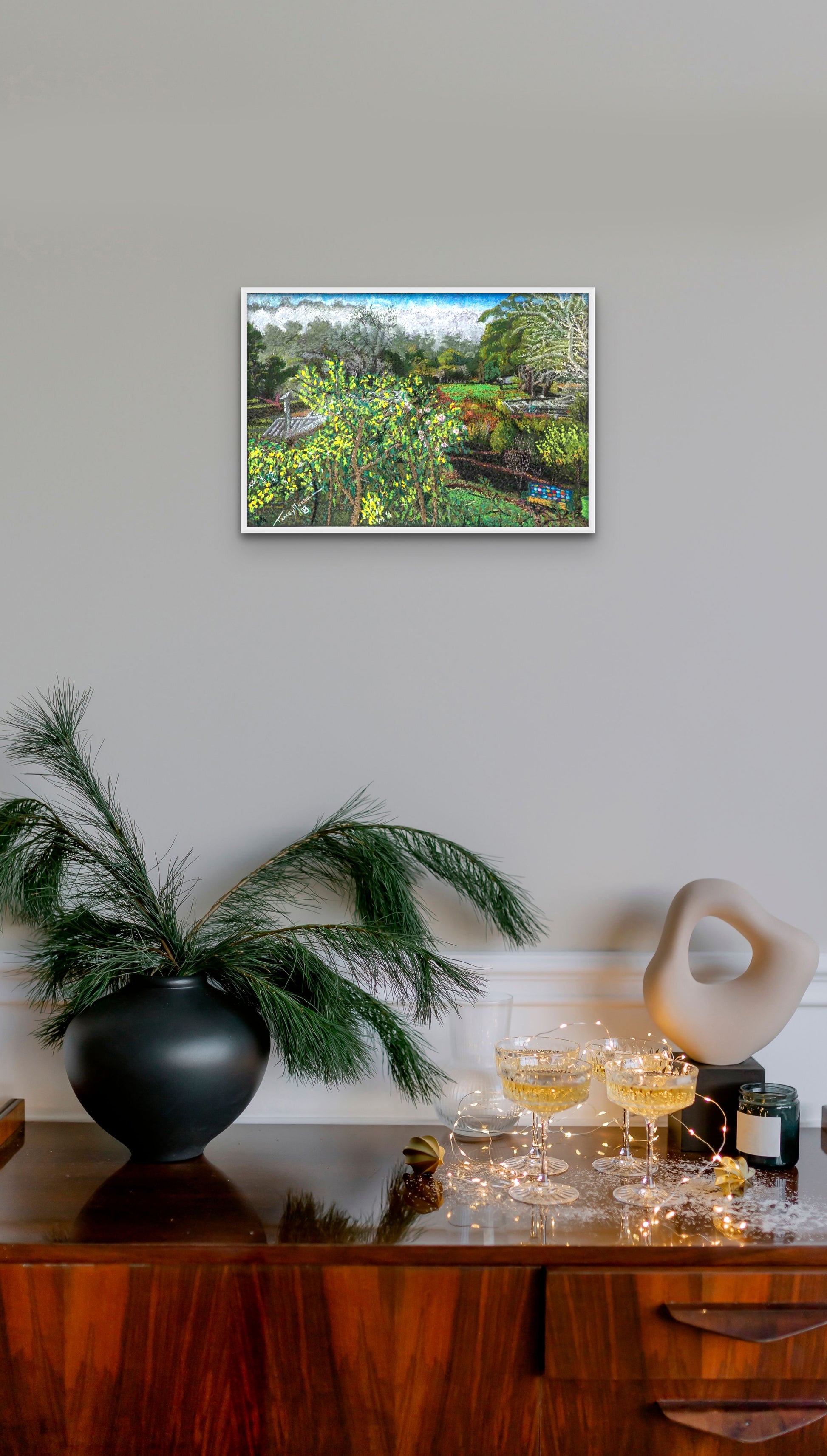 This landscape print has been reproduced from a commission done by Tracey. Hence the quirky name as it is a scene that is viewed from a loo in Tasmania. Tracey thoroughly enjoyed creating this quite complex scene in pointillism in soft pastels. Creating landscapes in dots with soft pastels is Tracey's latest favourite thing to do.