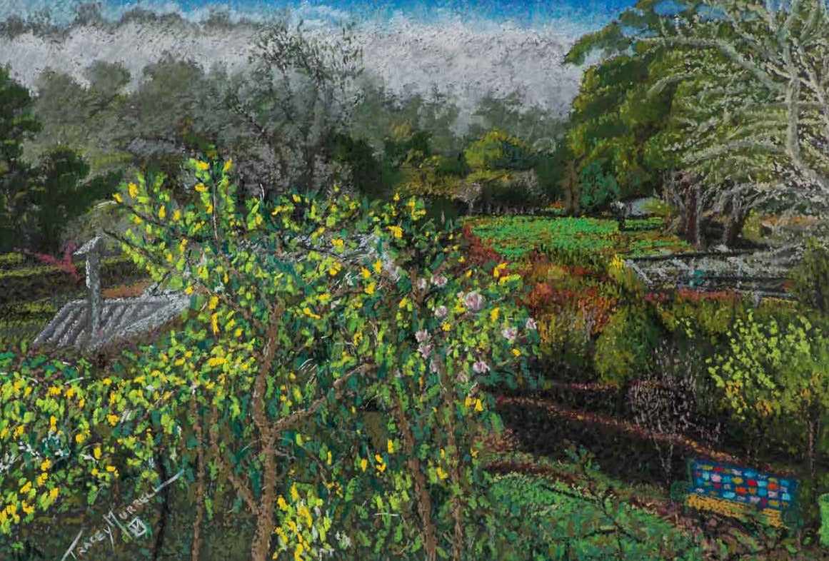 This landscape is a commission done by Tracey. Hence the quirky name as it is a scene that is viewed from a loo in Tasmania. Tracey thoroughly enjoyed creating this quite complex scene in pointillism in soft pastels. Creating landscapes in dots with soft pastels is Tracey's latest favourite thing to do. Its prints are available for sale.