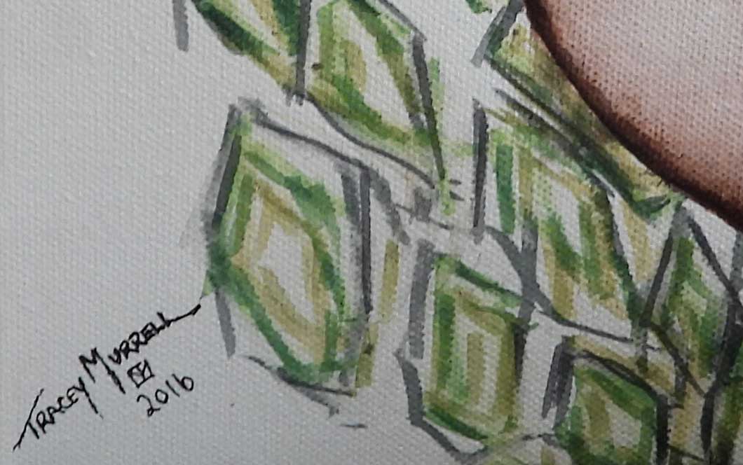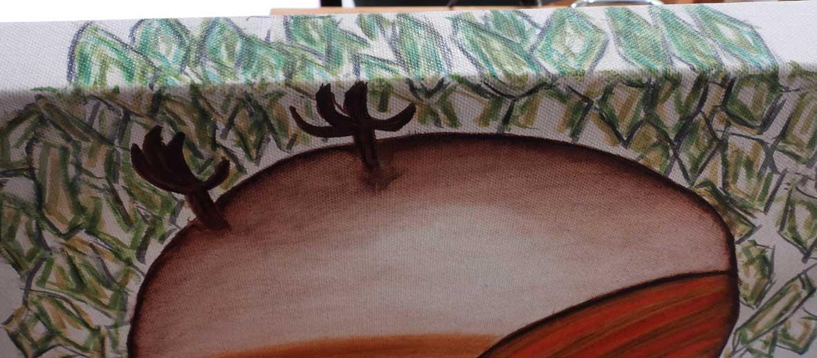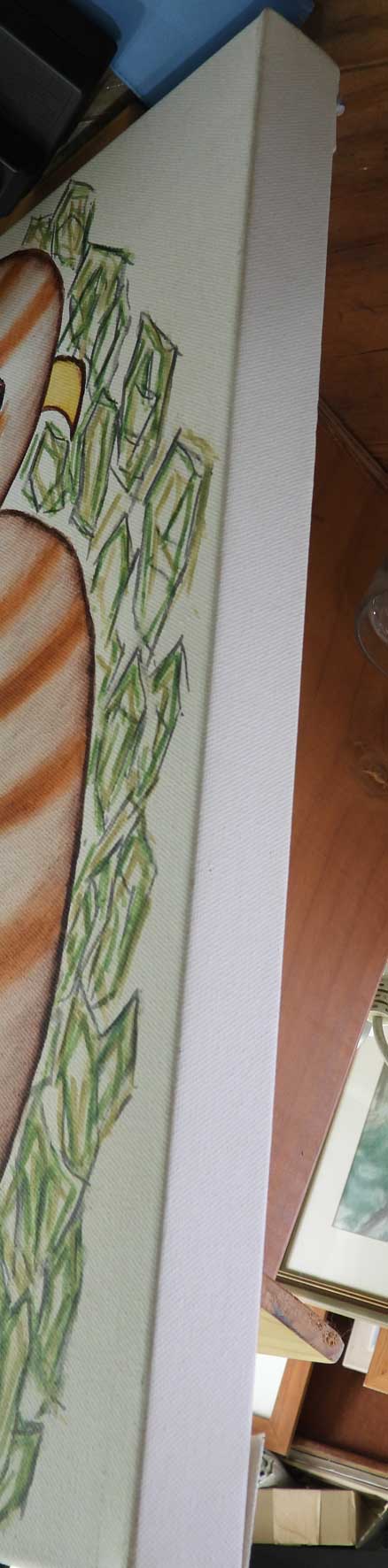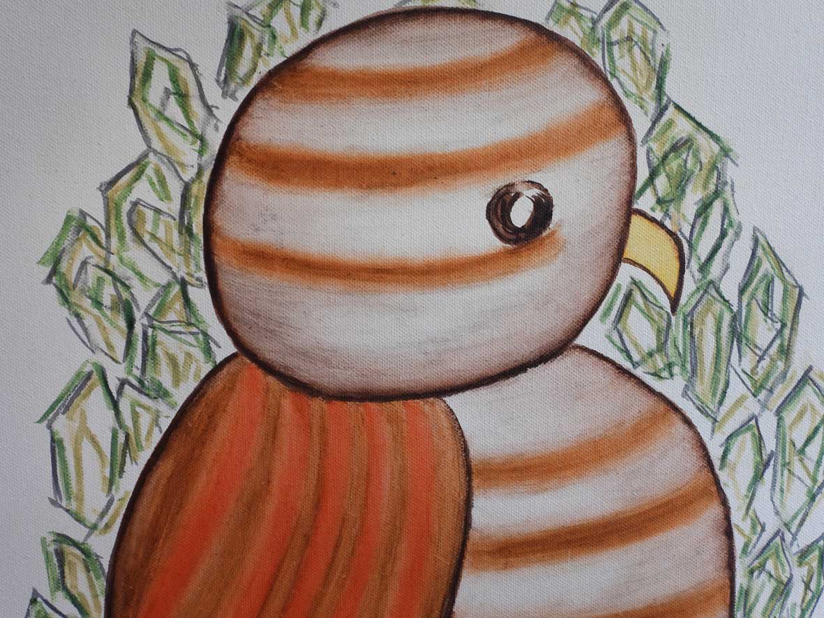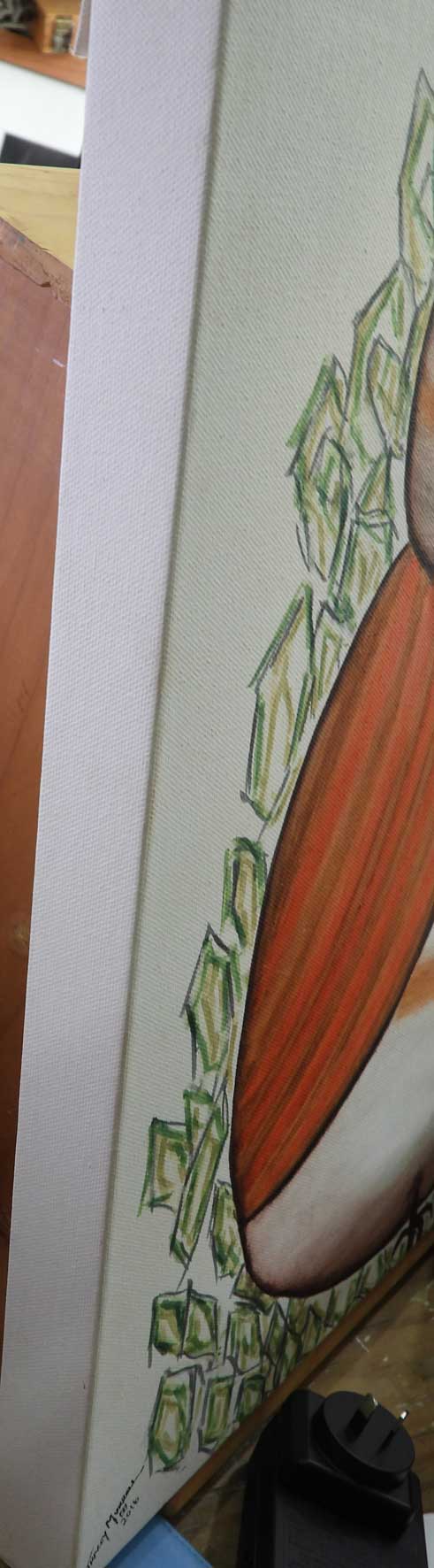 Tracey had a period where she was dreaming full artworks. This is one of those. Once dreamt, she has to paint them to get them out of her head. This fantasy bird on an abstract nest is a joyful painting. You can't look at it without smiling. It's simplicity is it's charm. Would be lovely in a child's room or anywhere you want to smile. It would be preferable not to frame this work as it wraps around the bottom of the canvas.